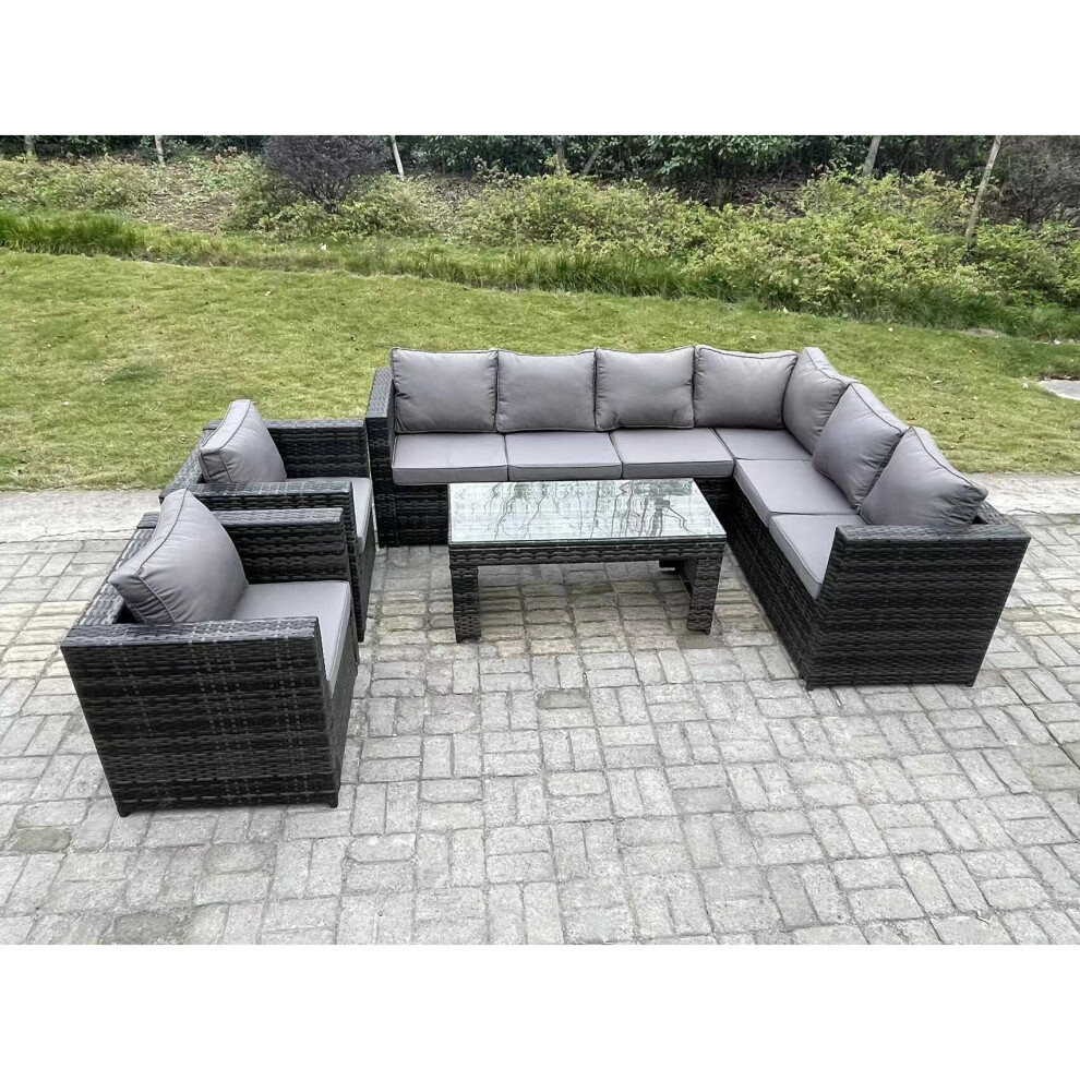 Fimous 8 Seater Rattan Corner Sofa Lounge Sofa Set With Rectangular Coffee Table 2 Arm Chair Dark Grey Mixed Right Hand