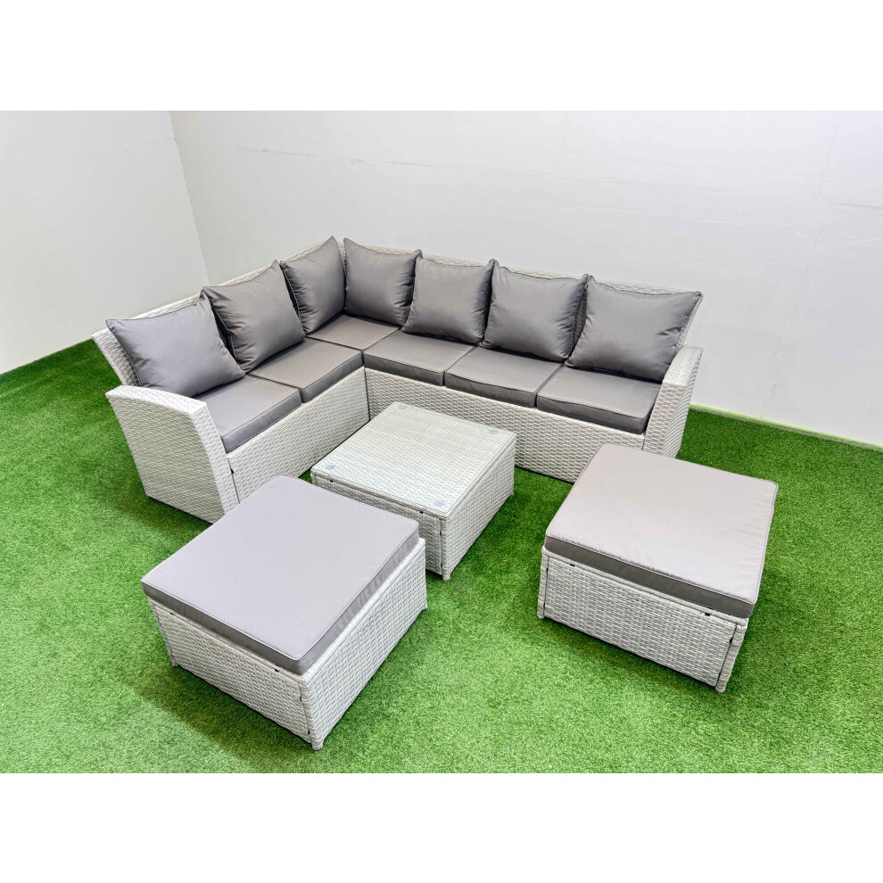 Fimous Outdoor Rattan Garden Furniture Set 8 Seater Corner Sofa Sets with Square Coffee Table 2 Big Footstools Light Grey Mixed
