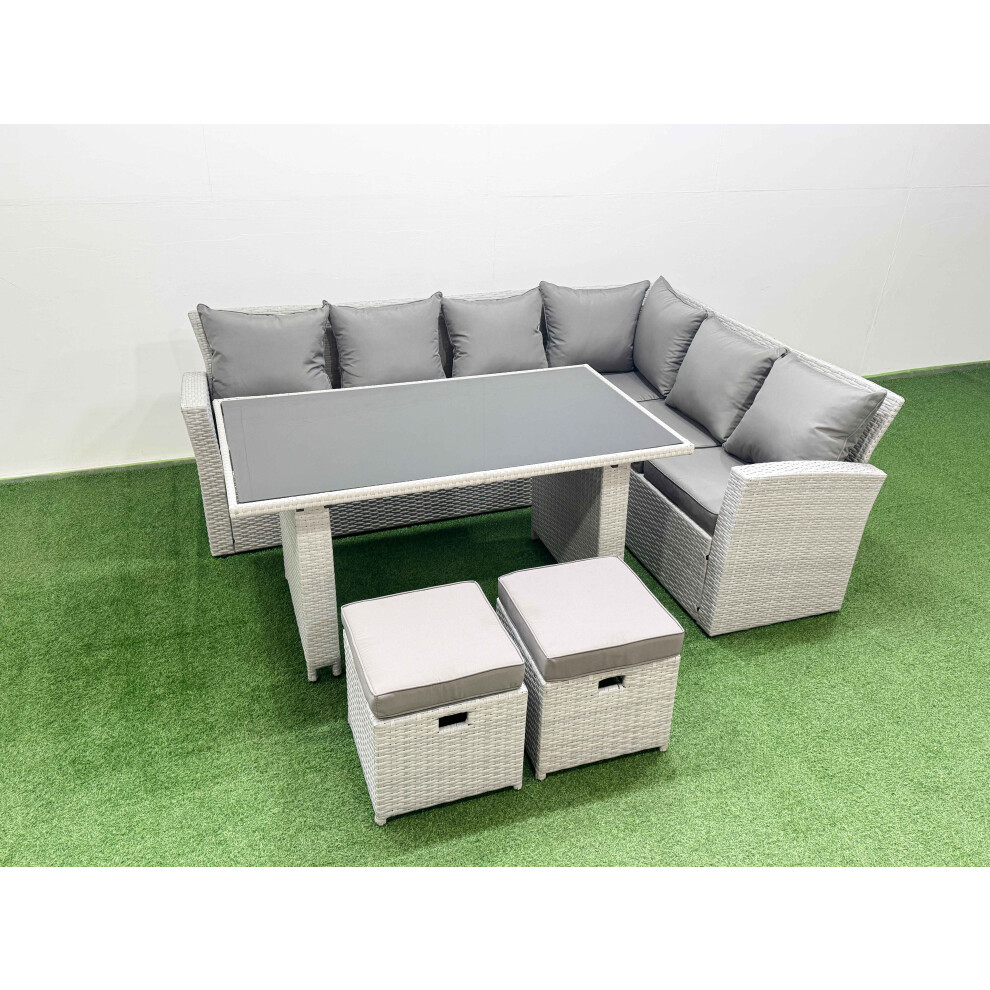 FMSGarden Rattan Garden Furniture Set Outdoor 8 Seater Patio Dining Corner Sofa Sets with Dining Table 2 Small Footstools Light Grey Mixed