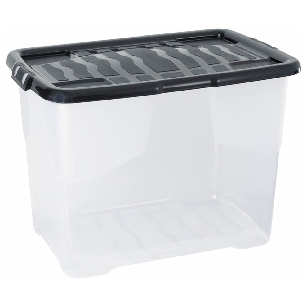 1 x 80 Litre Curve Plastic Storage Box With Black Lid For Home & Office