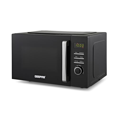 GEEPAS Digital Microwave Oven, 23L | 5 Power Levels, Reheating & Defrost Function | Digital Display 60 Minute Timer 8 Pre-set Modes | Easy Clean Oven for Standard Size of Dinner Plate 800W Black