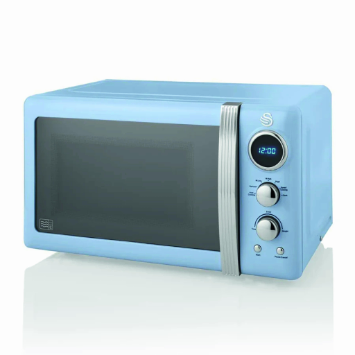 Salter Cosmos Microwave – 20 Litre Solo Microwave Oven with Digital Display, 800W, Compact, 8 Auto Cooking Functions, Defrost Function, 95 Minute Timer, 25.5 cm Glass Turntable, Easy Clean, Blue Grey