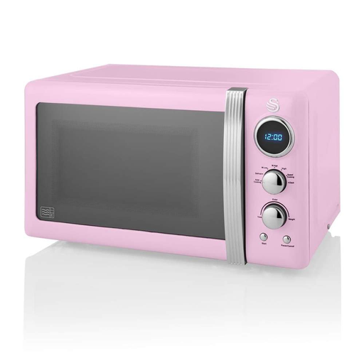 Salter Retro Digital Pink Microwave – 20 Litre, Defrost by Time/Weight, 25.5 cm Glass Turntable, 95 Minute Timer, 8 Auto Cooking Presets, Solo Microwave Oven, Easy Clean, Button/Dial Control, 800W