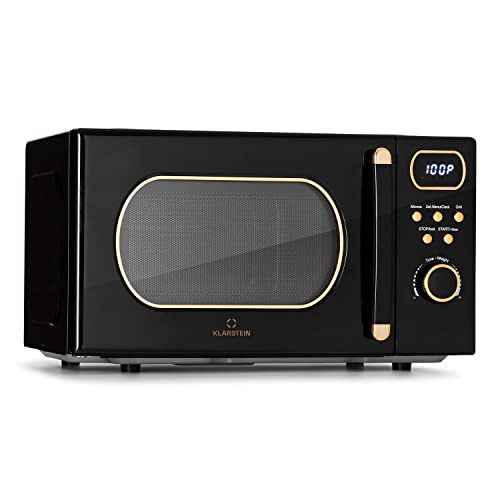 Klarstein Microwave Oven, Countertop Microwave Ovens 800w with Grill, Solo Compact Stainless Steel Microwave, 20L Large Interior Smart Digital Microwave w/Defrosting Plate, Power Saving & Easy to Use