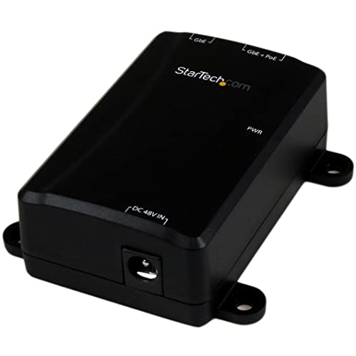 StarTech.com POEINJ1G 1 Port Gigabit Midspan, PoE+ Injector, 802.3at and 802.3af, Wall-Mountable Power Over Ethernet Injector Adapter