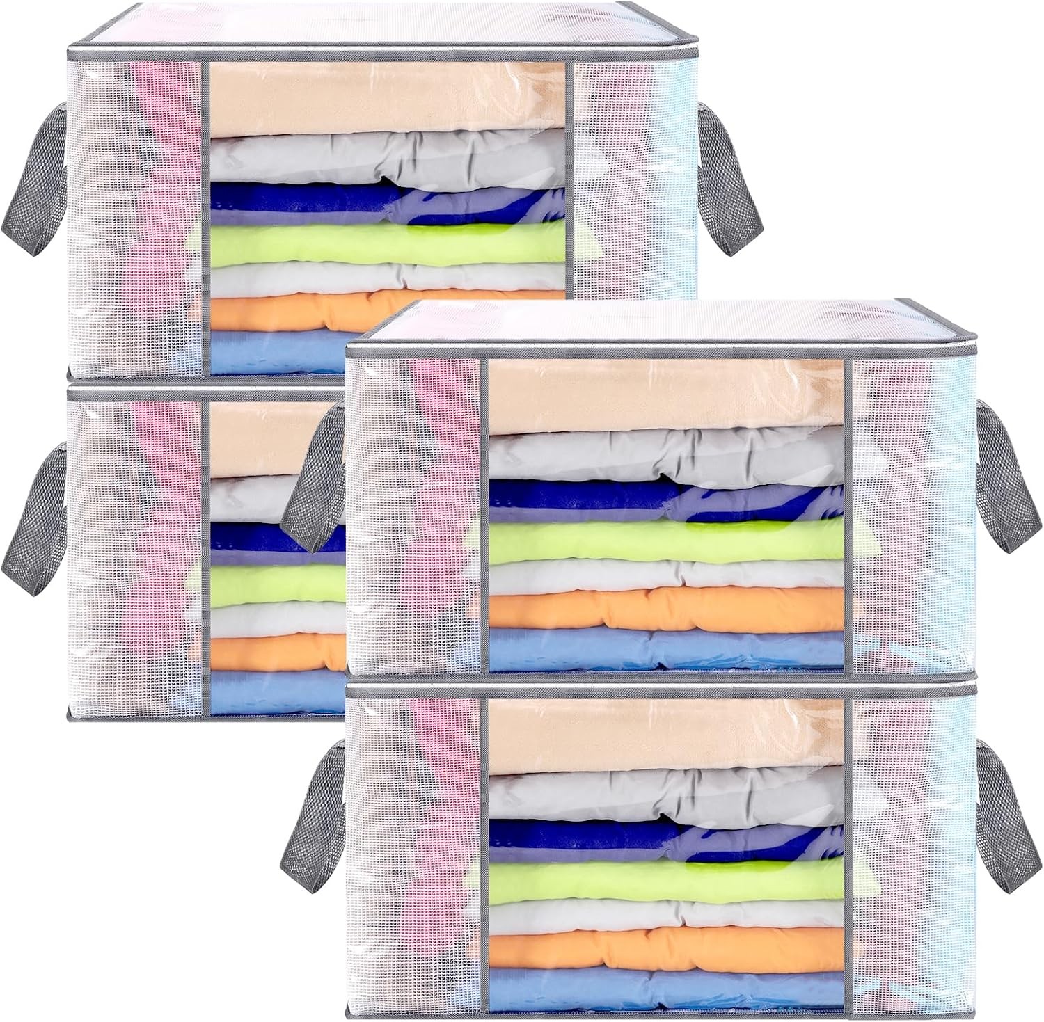 SUNNOW 4 Pcs 80L Clear Clothes Storage Bags, Under bed Storage Box with Zip for