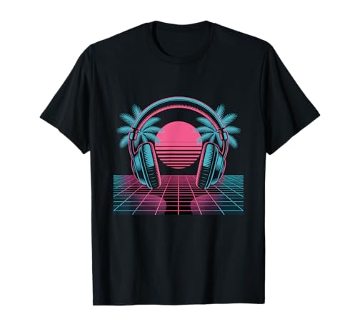 Retro Headphones Sunset Palm Trees 80s 90s T-Shirt