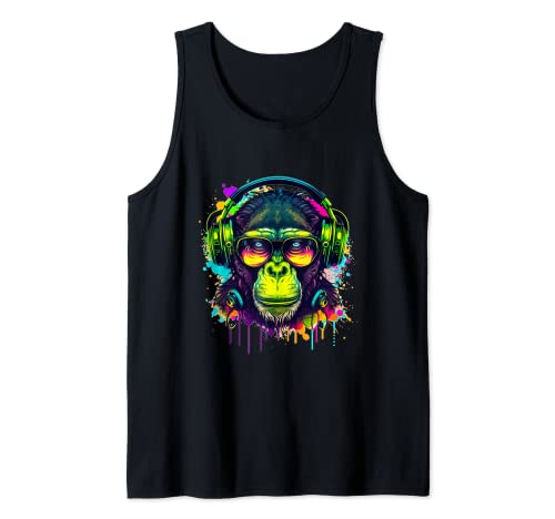 Techno-Disco Rave Monkey DJ Monkey Headphones for Festivals Tank Top