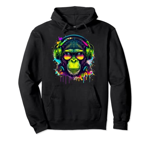 Techno-Disco Rave Monkey DJ Monkey Headphones for Festivals Pullover Hoodie