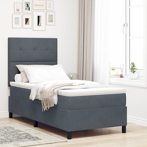vidaXL Ramsäng med madrass mörkgrå 80x200 cm sammet 3286169