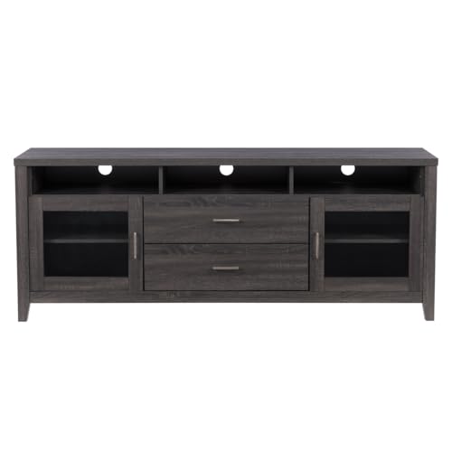 Corliving Hollywood Dark Grey Engineered Wood TV Stand for Most TVs up to 85" with Open and Closed Storage - Media Cabinet with Cable Management, Classic Entertainment Center