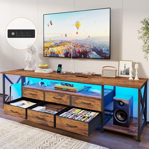 BTHFST TV Stand with LED Lights & Power Outlets, for TVs up to 85 Inches, 6 Drawers Entertainment Center with Open Storage Shelves, 71" TV Media Console Table for Living Room, Bedroom, Rustic Brown