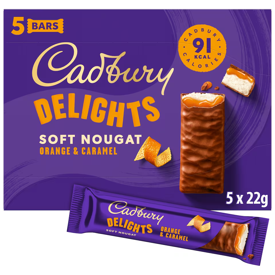 4 x Cadbury Delights Orange Caramel Chocolate Nougat Bar 5 Pack 110g