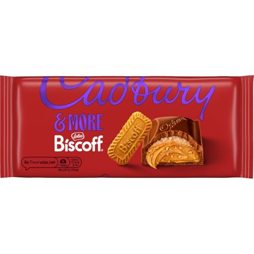 Cadbury & More Lotus Biscoff Chocolate Bar, Milk Chocolate with Crunchy Biscoff Pieces 195 g (Pack of 1)