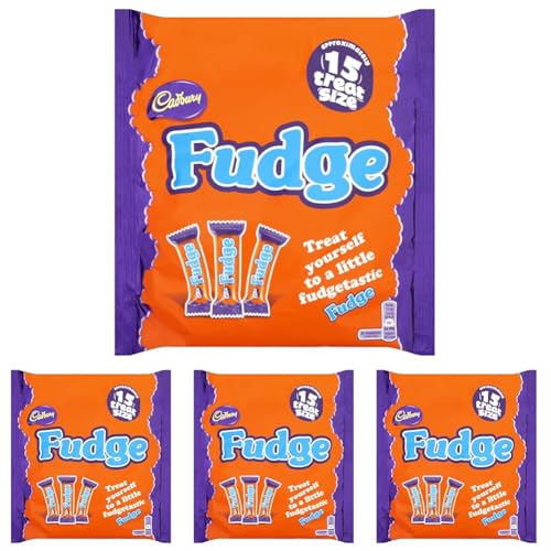 Cadbury Fudge Treatsize Chocolate 15 Bar Multipack, Rich Chocolate and Creamy Fudge, Perfect for Trick or Treat Gifts or Halloween Party, 202g (Pack of 4)