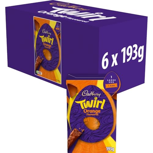 Cadbury Twirl Orange Flavoured Chocolate Easter Egg, Includes 1 Large Egg and 1 Twirl Bar, Gift for Easter, 193 g (Pack of 6)