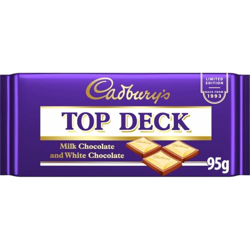 Cadbury Top Deck Milk Chocolate and White Chocolate Bar, Layers for Snacking, Sharing & Gifting 95 g