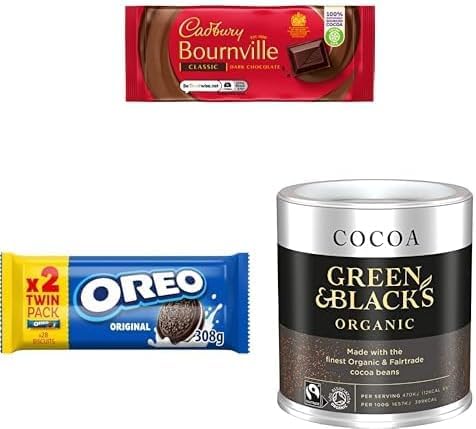 Cadbury Ultimate Baking Essentials Bundle, Includes 100 g Bournville Dark Chocolate Bar, Twin Pack of Oreo Original Sandwich Biscuits & 125 g Green & Black's Organic Cocoa Powder