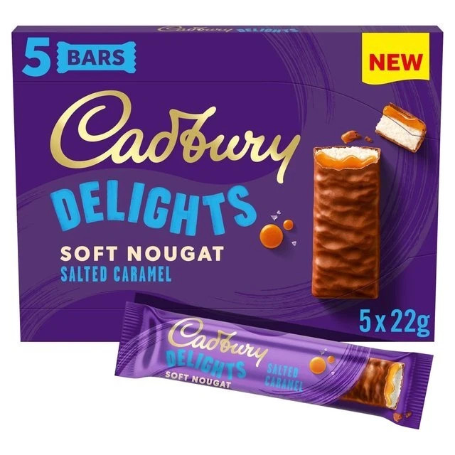 4 x Cadbury Delights Salted Caramel Chocolate Nougat Bar 5 Pack 110g