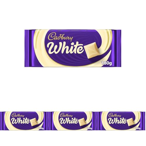 Cadbury White Chocolate Bar, Creamy White Chocolate Treat for Snacking, Sharing & Gifting 180 g (Pack of 4)