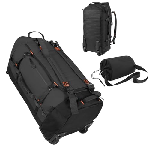 Vrtisa 85L 29“ Foldable Rolling Backpack with Wheels, Soft-side Travel Duffle Bag with Separate Shoe Compartment, Full Quilted Bottom, Black, Casual