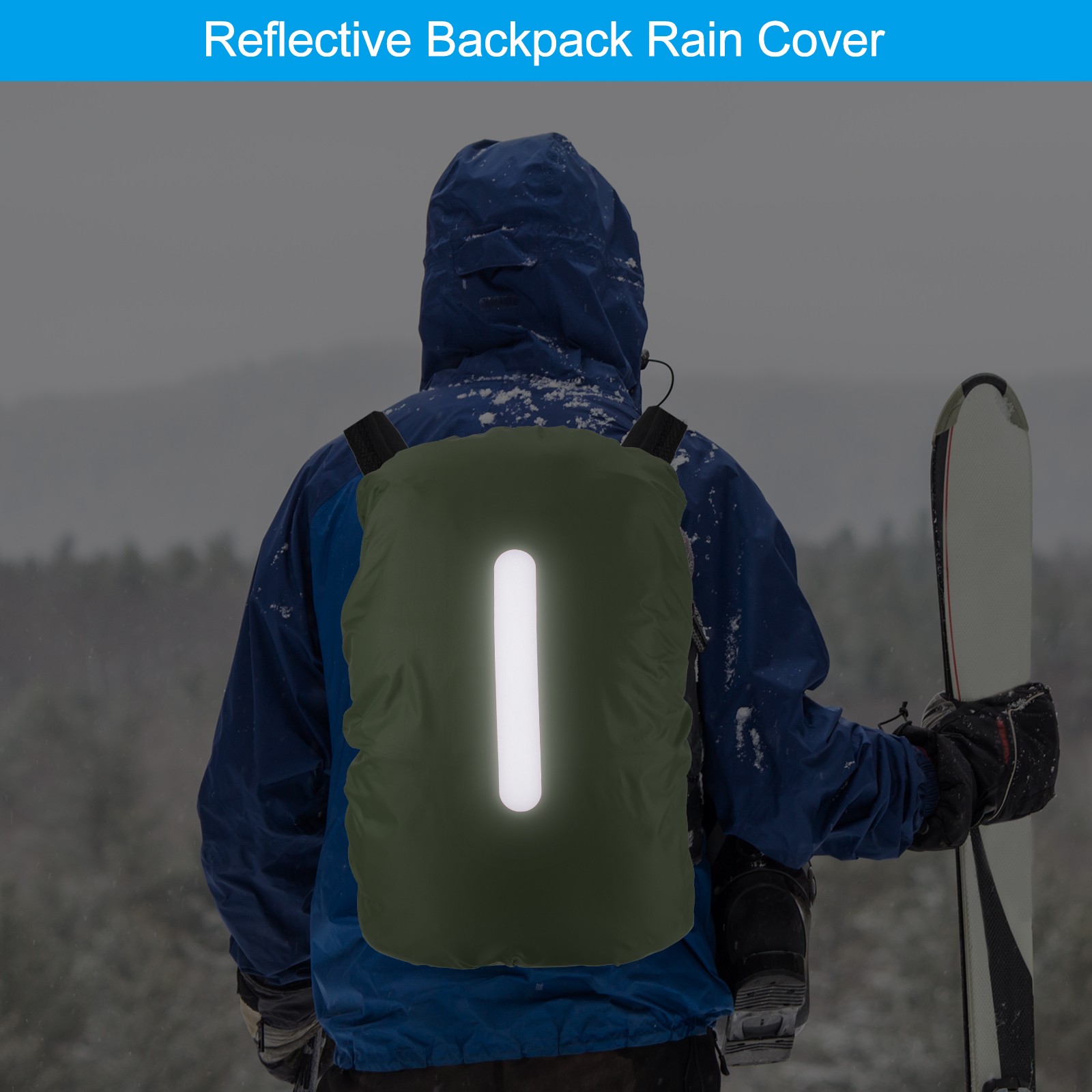 75L-85L Backpack Rain Cover with A Vertical Reflective Strap [Postal Green]