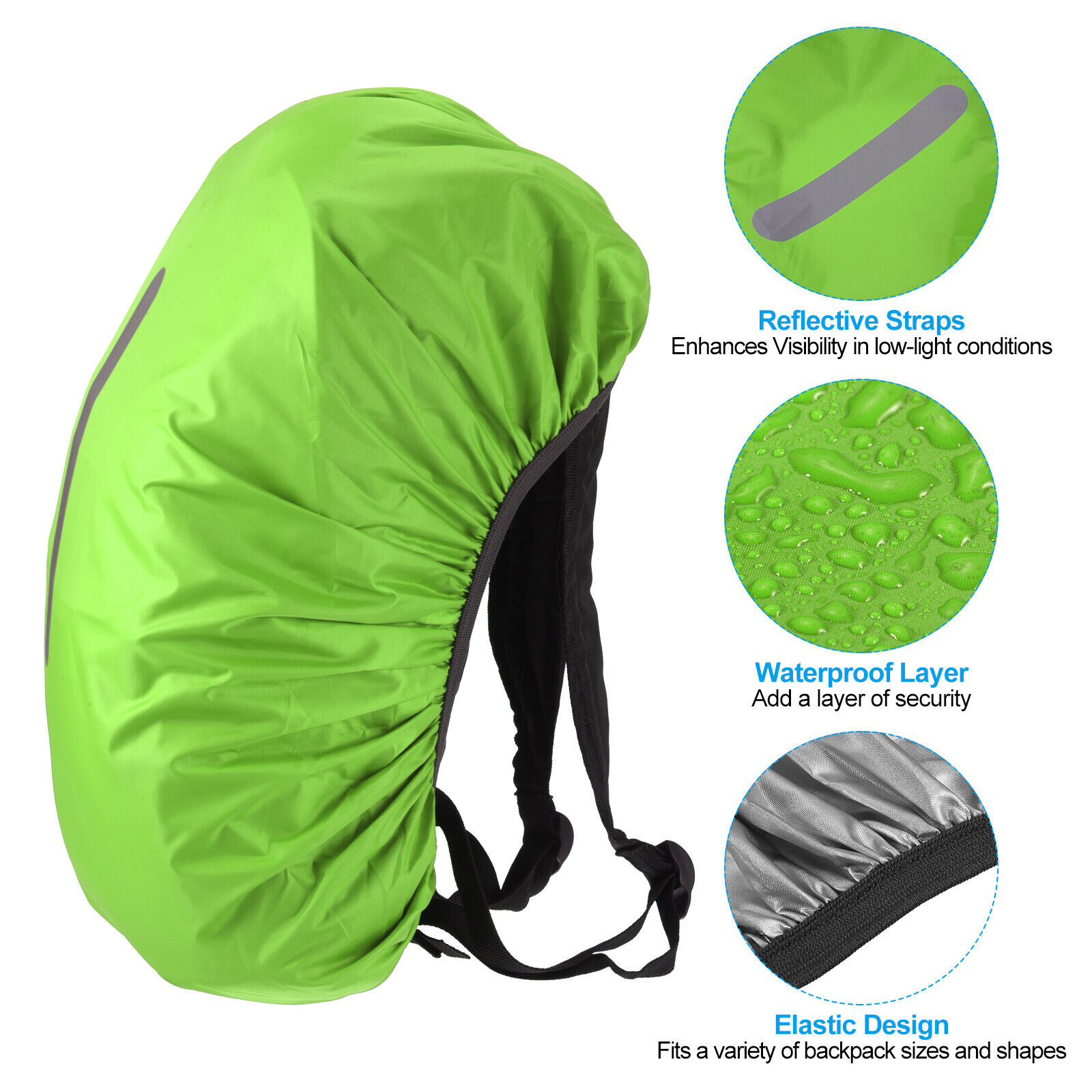 75L-85L Backpack Rain Cover with A Vertical Reflective Strap [Lake Blue]
