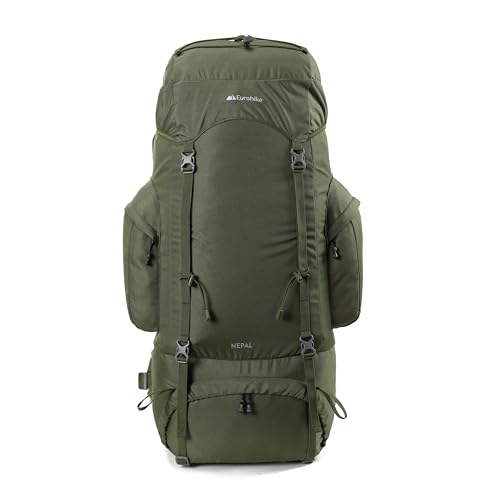 Eurohike Nepal 85 Litre Rucksack with Ventilated Back Panel & Padded Harness, 85L Backpack, Bag for Men & Women, Adjustable, Lightweight, Camping, Hiking, Trekking, Travelling, Outdoor, Green