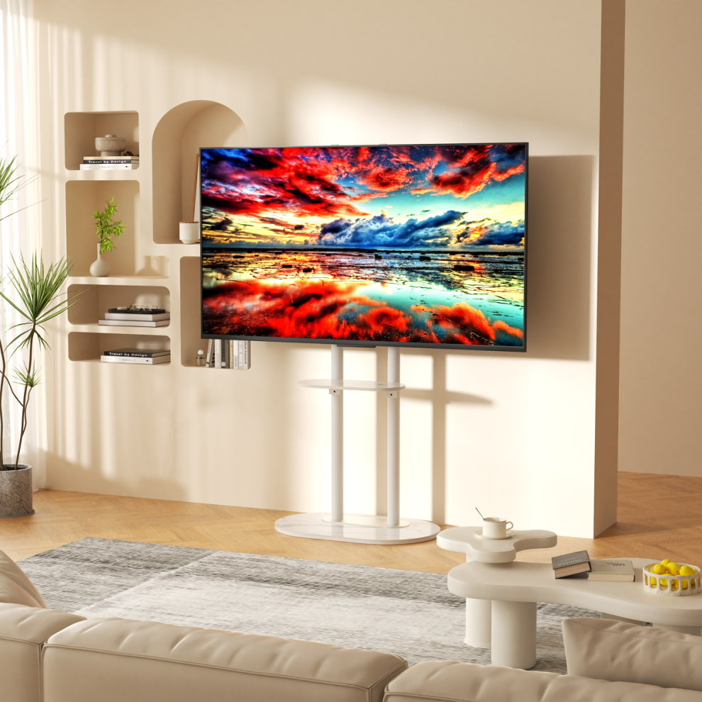 MEIZHITU TV Stand For Living Room Mobile TV Stand With Wheels, Swivel Height-Adjustable Rolling Cart Trolley Floor With Shelf Meeting Room(A,70-88inch)