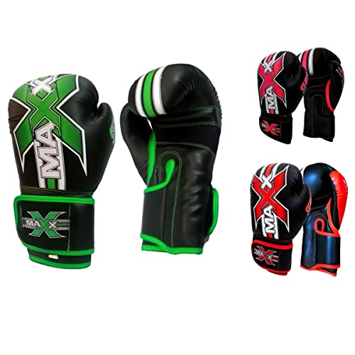 Maxx Junior Boxing Gloves kids sparring Gloves Punch Bag Gloves (8oz, Black/Green)