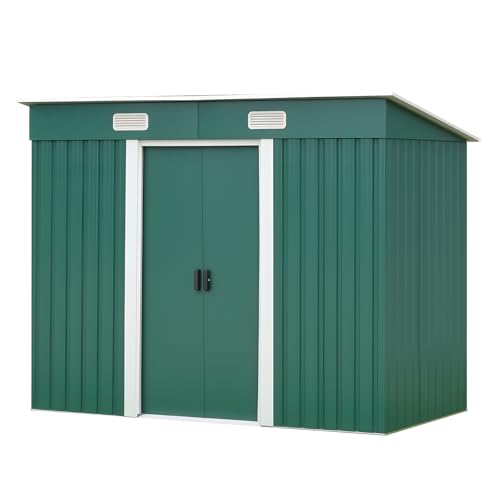 Panana Metal Garden Shed Storage Sheds Heavy Duty Outdoor FREE Base Foundation Green/Grey Color (8x4 Green)