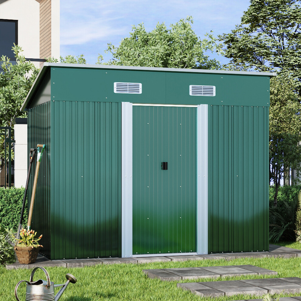 Outsunny 8 x 4FT Garden Shed, Galvanised Metal Shed, Easy to Assemble, Outdoor Tool Storage Shed with Pent Roof, Lockable Door and 2 Vents, Green