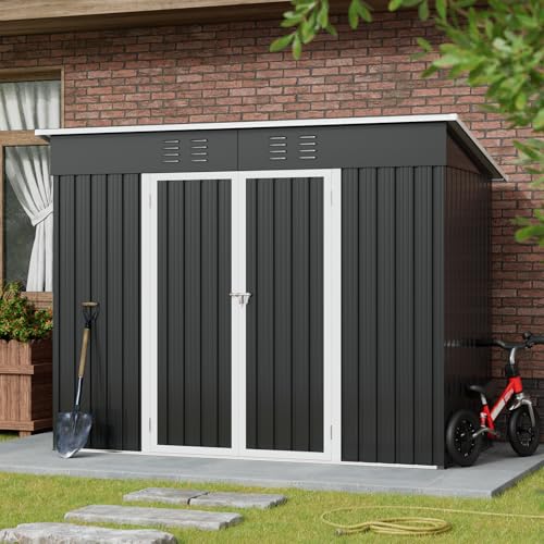 8 x 4 ft Metal Garden Storage Shed with Foundation Base, Charcoal Black