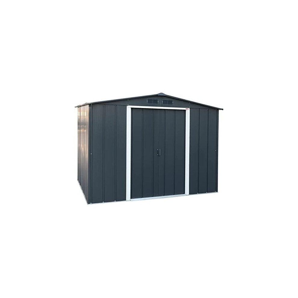 Living and Home 8x6 ft Metal Garden Storage Shed Pent Roof Double Lockable Sliding Doors,Charcoal Black
