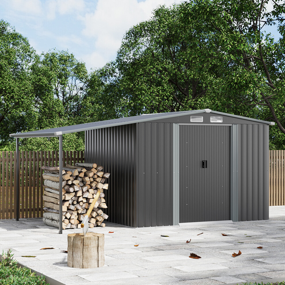 8 x 6 ft Outdoor Metal Storage Shed with Lean-to, Dark Grey