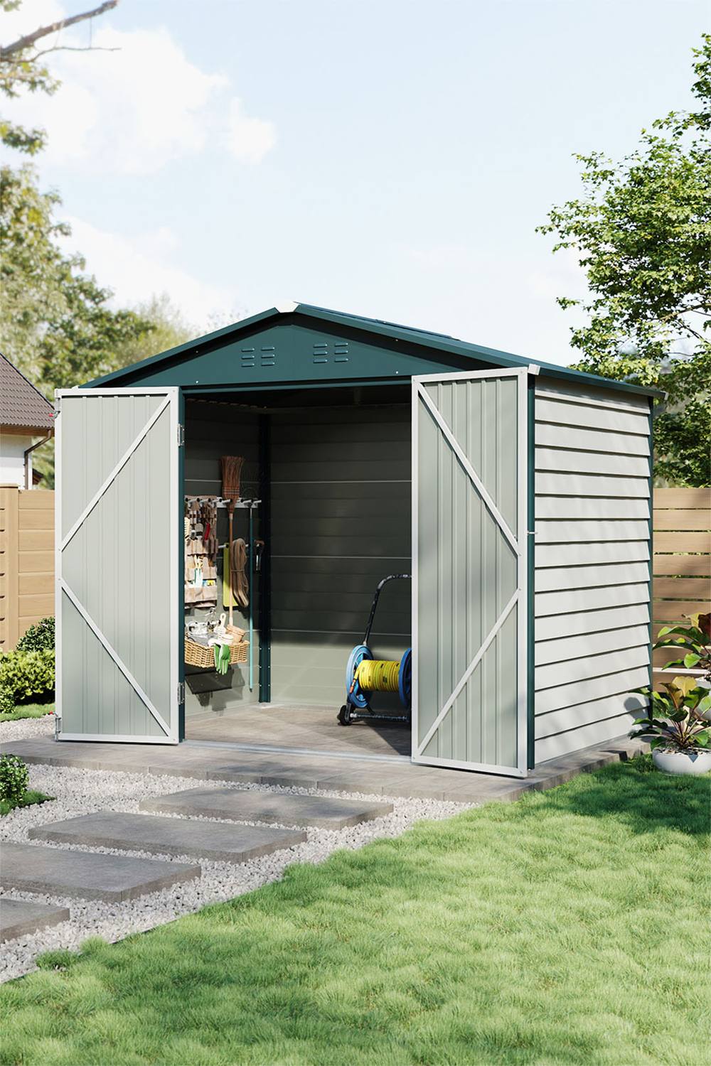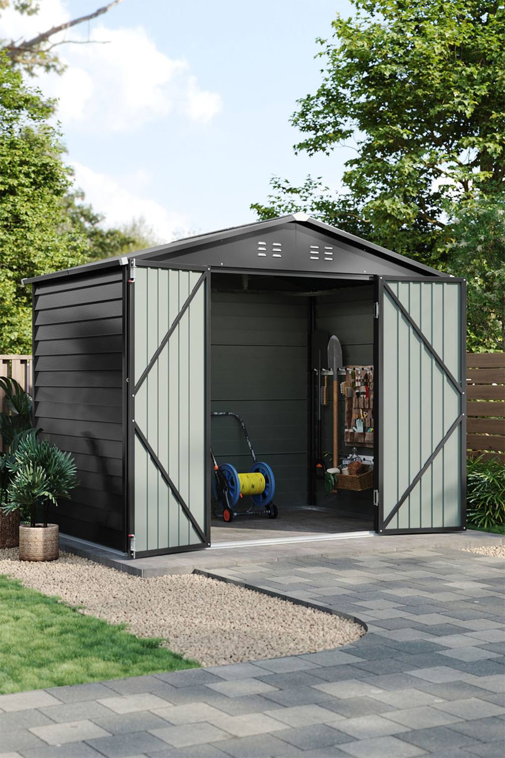 Outsunny 8x6ft Garden Storage Shed Light Grey, Grey