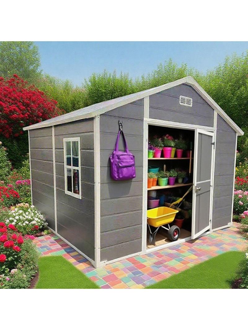 (Apex 8X6FT) Plastic Garden Shed with Floor Lockable Wood Grain