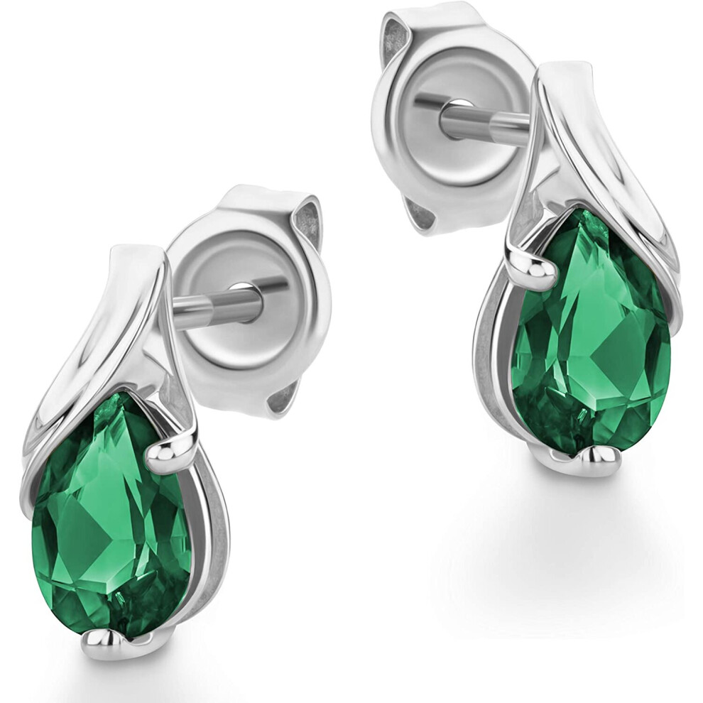 Orovi Jewelry Women White Gold 9 Carat / 375 Gold Drop Earrings with Gemstone/Birthstone Emerald in Green
