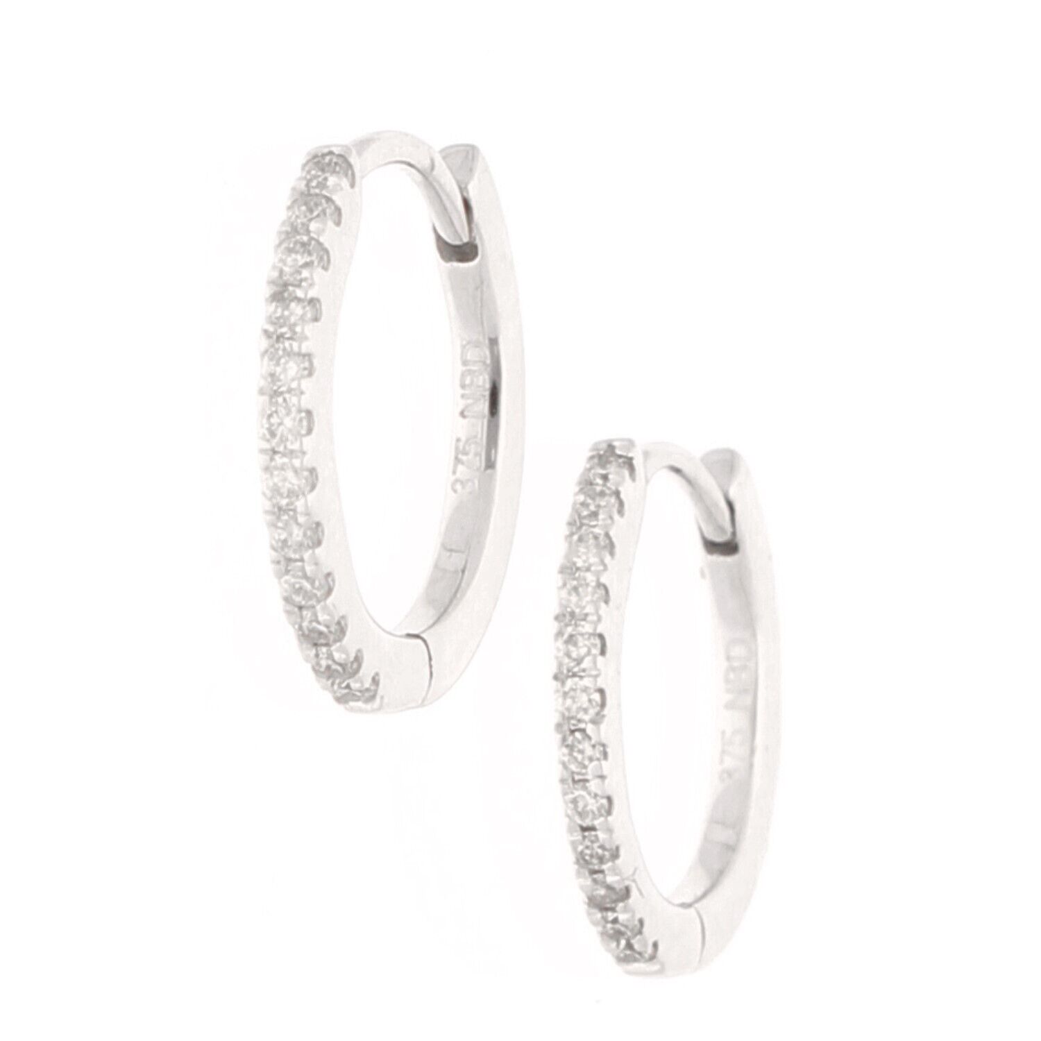 New! 9Carat White Gold 0.14ct Diamond Hoop Earrings (13.5mm Diameter)