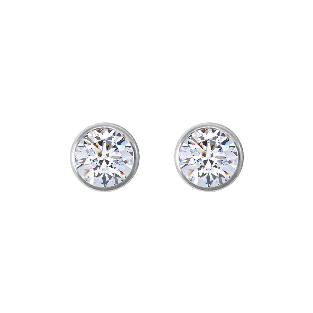 9ct White Gold Jewelco London CZ Rub Over Solitaire Stud Earrings, 5mm 1 Carat