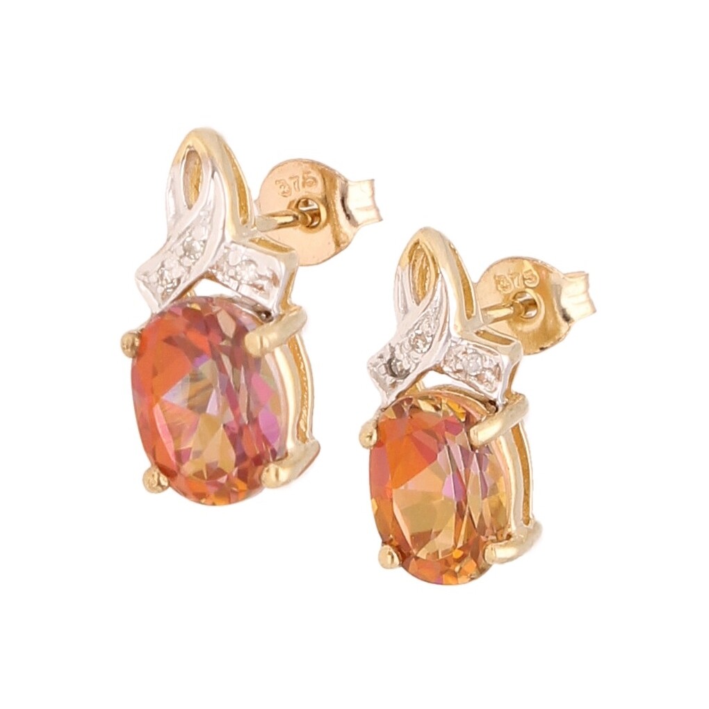 New! 9Carat Yellow Gold Mystic Topaz Stud Earrings (6x10mm)