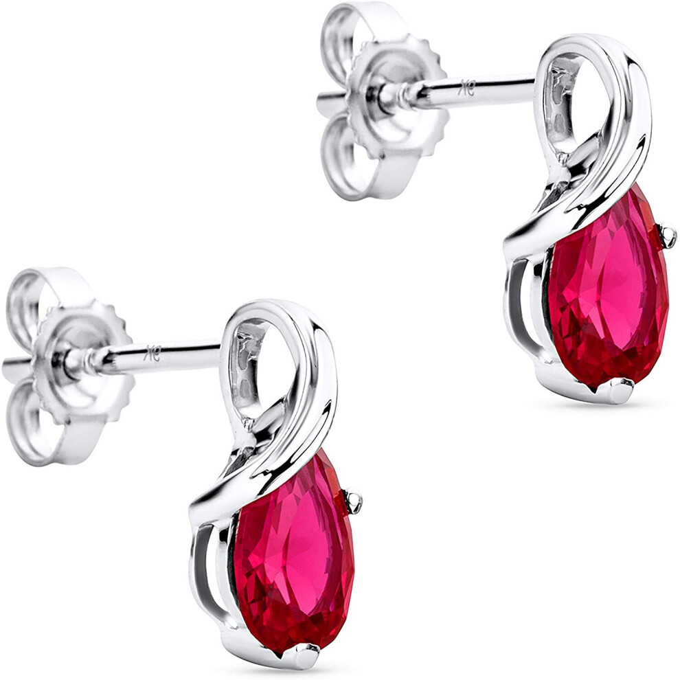Orovi Jewelry Women White Gold 9 Carat / 375 Gold Drop Earrings with Gemstone/Birthstone Ruby in Red