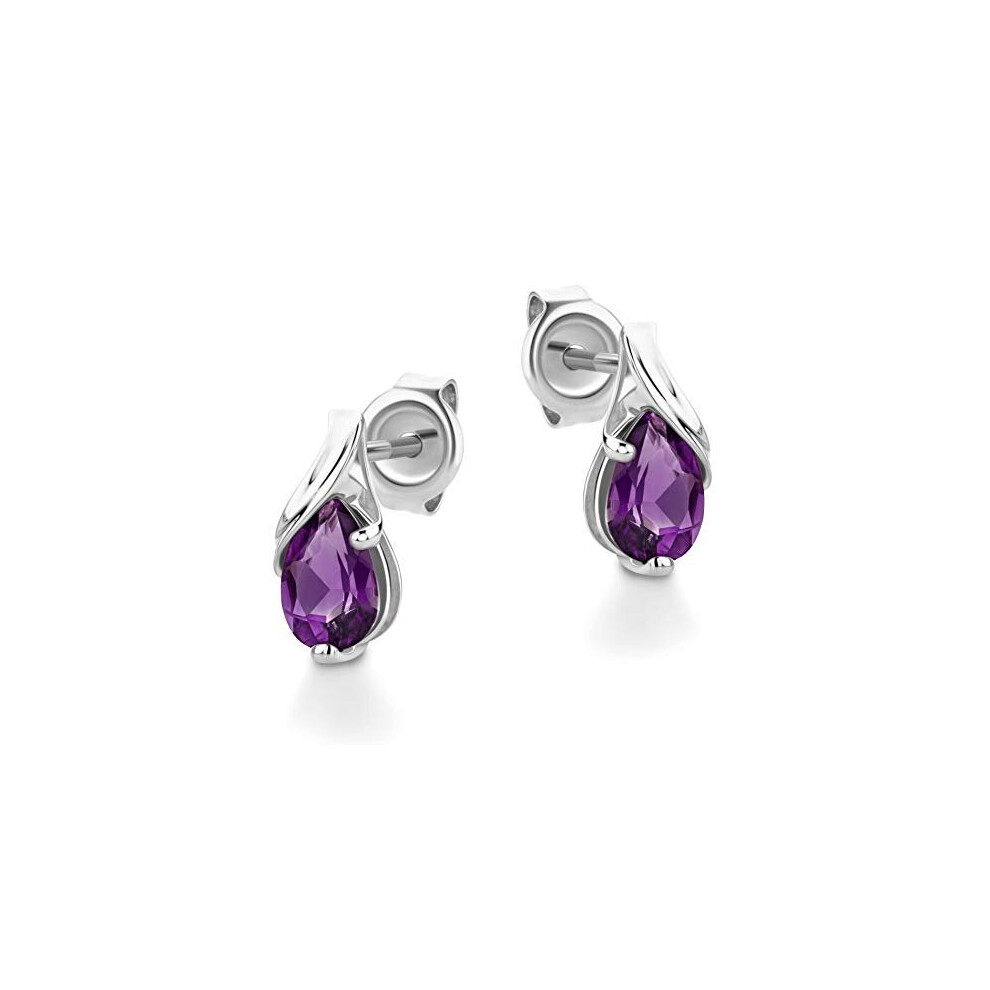 Orovi Jewelry Women White Gold 9 Carat / 375 Gold Drop Earrings with Gemstone/Birthstone Amethyst in Purple
