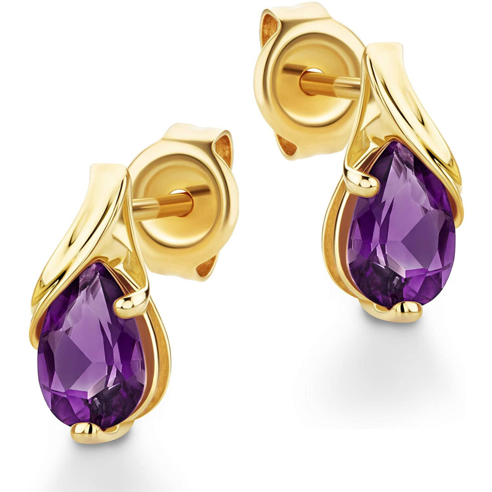 Orovi Jewelry Women yellow Gold 9 Carat / 375 Drop Gold Earrings with Gemstone/Birthstone Amethyst in Purple