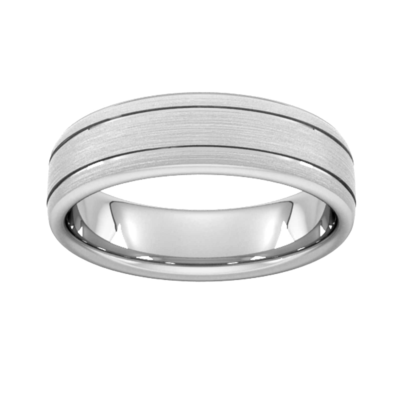 6mm Flat Court Heavy Matt Finish With Double Grooves Wedding Ring In 9 Carat White Gold - Ring Size Y