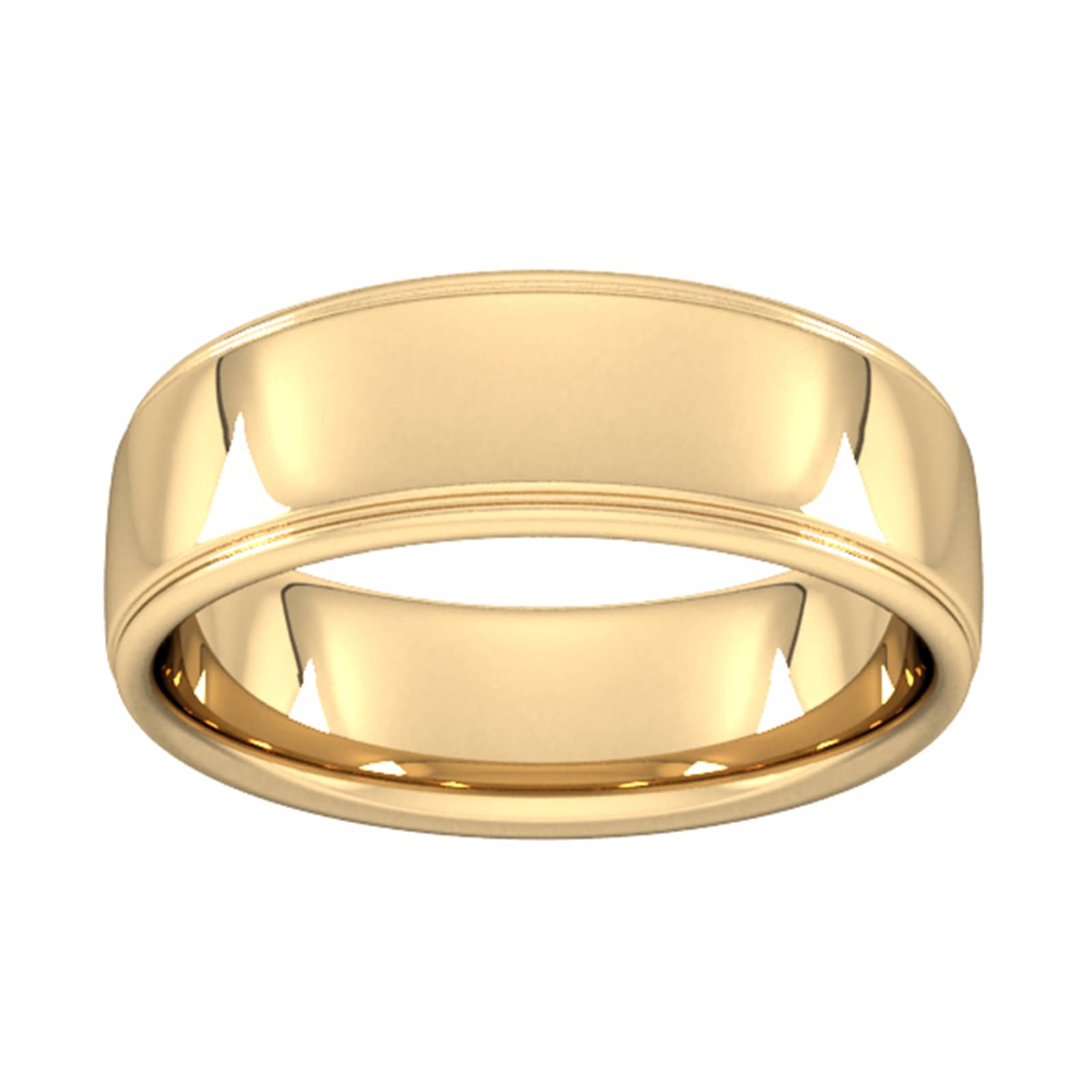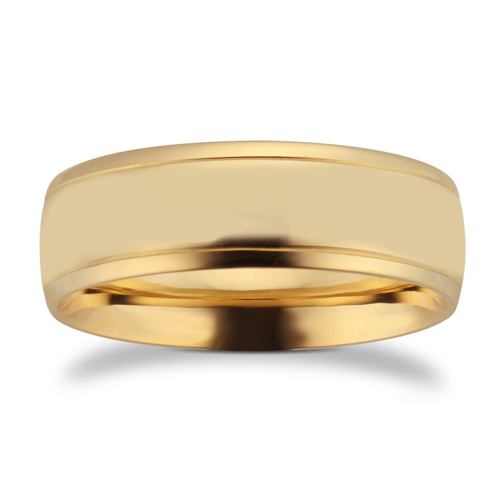 7mm Traditional Court Heavy Polished Finish With Grooves Wedding Ring In 9 Carat Yellow Gold - Ring Size U