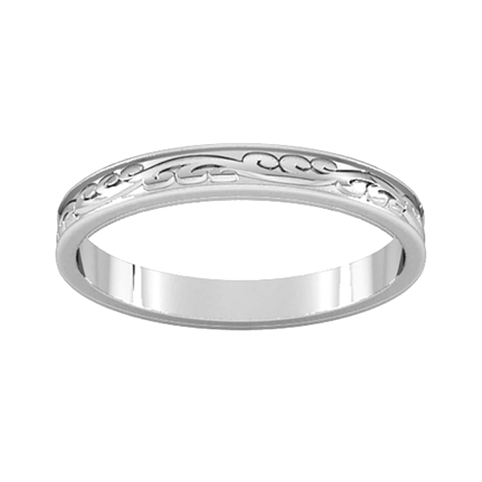 2.5mm Hand Engraved Wedding Ring In 9 Carat White Gold - Ring Size M