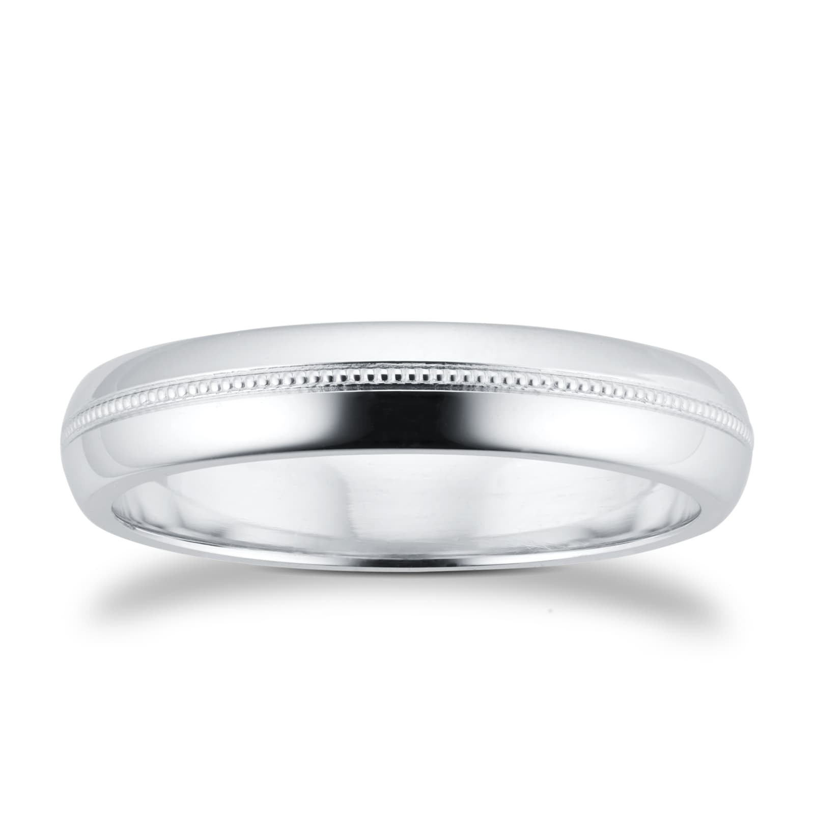4mm D Shape Heavy Milgrain Centre Wedding Ring In 9 Carat White Gold - Ring Size R