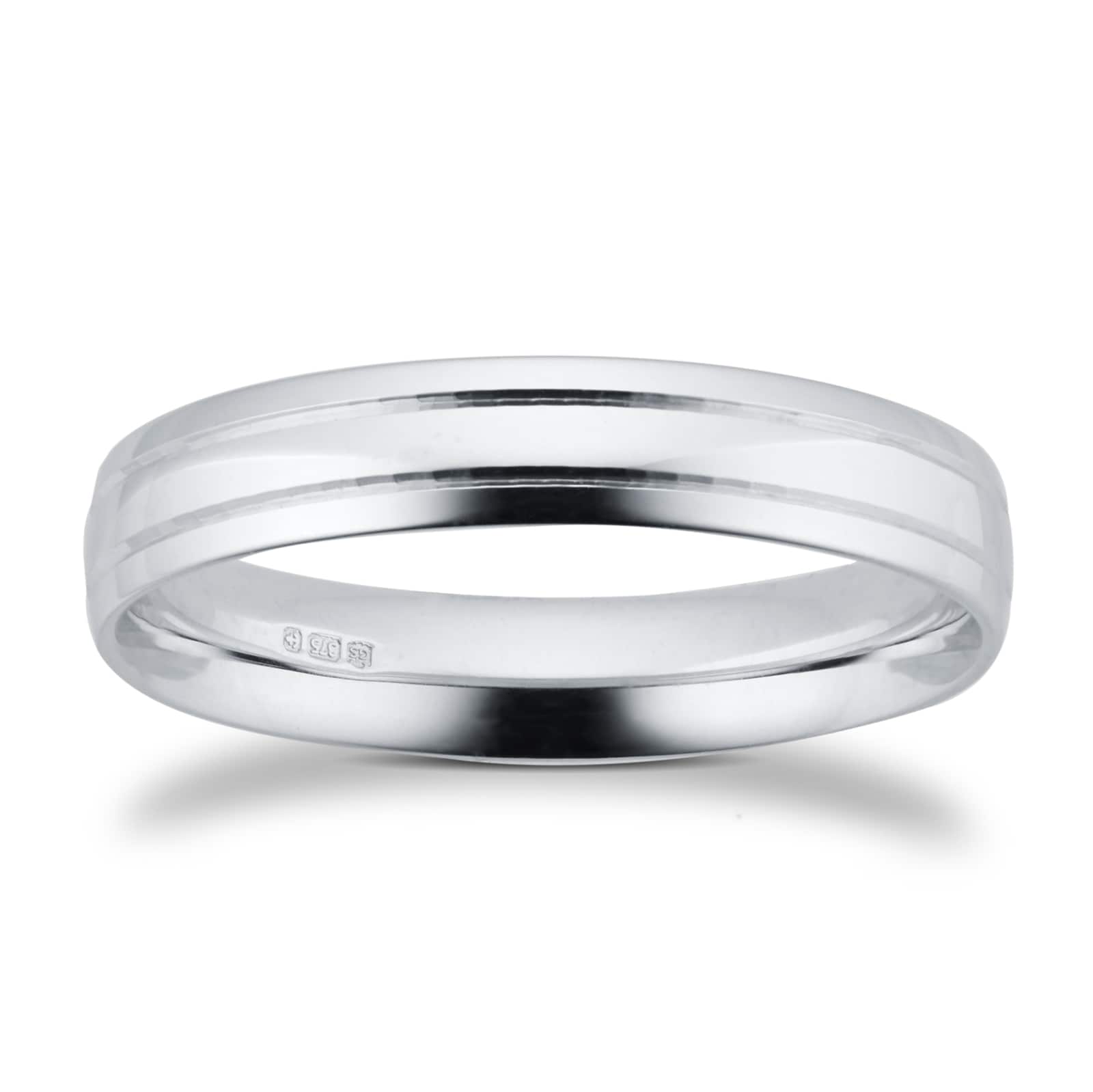 4mm Traditional Court Standard Polished Finish With Grooves Wedding Ring In 9 Carat White Gold - Ring Size Q