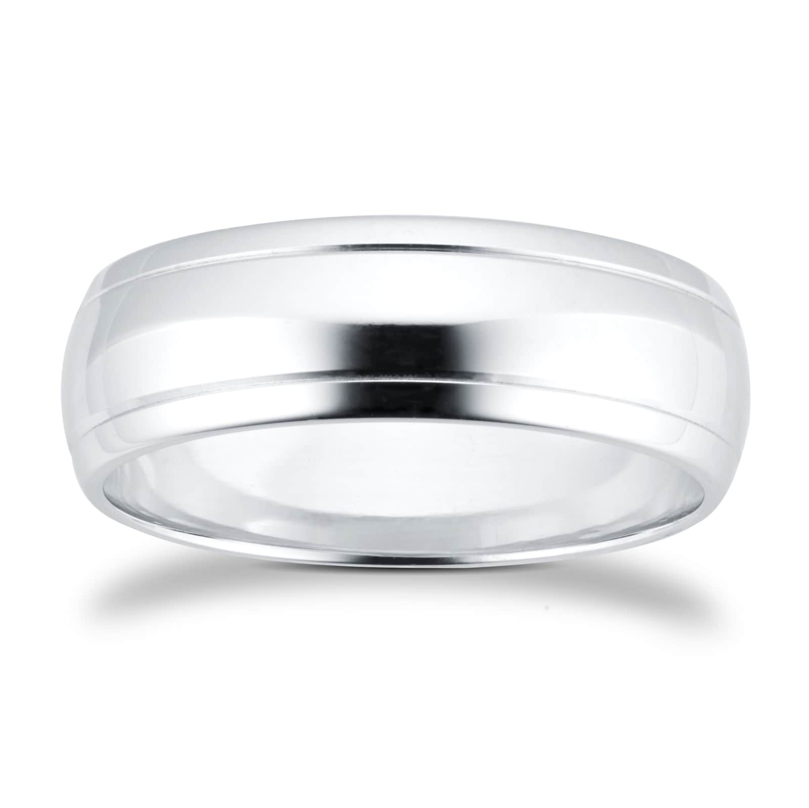 6mm D Shape Standard Polished Finish With Grooves Wedding Ring In 9 Carat White Gold - Ring Size P